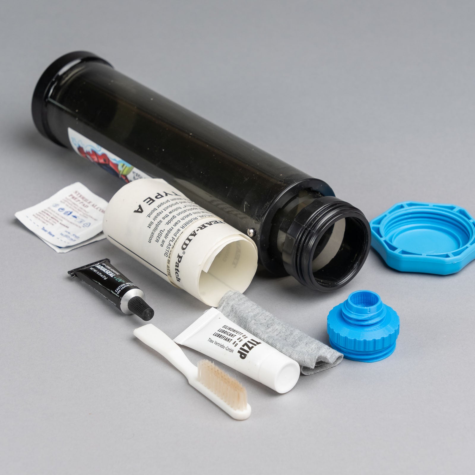Note: Avoid storing loose repair glues like Aquaseal in the pump as they may burst if during the pumping process. Protect them by wrapping in a soft cloth or plastic bag.